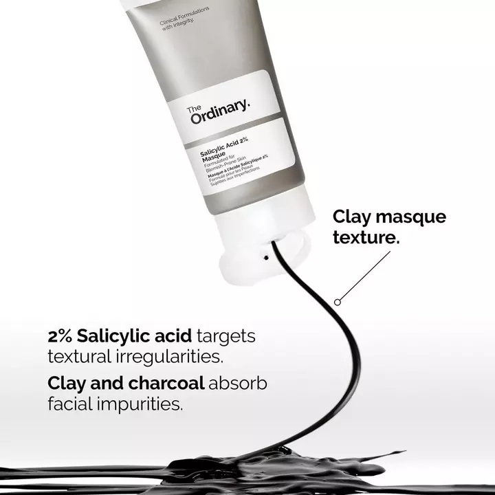 The Ordinary’s Salicylic Acid 2% Clarifying Masque is a clay mask with 2% salicylic acid and vegetable charcoal. This rinse-off mask enhances the appearance of a smooth and clear complexion while leaving the skin feeling refreshed.efits